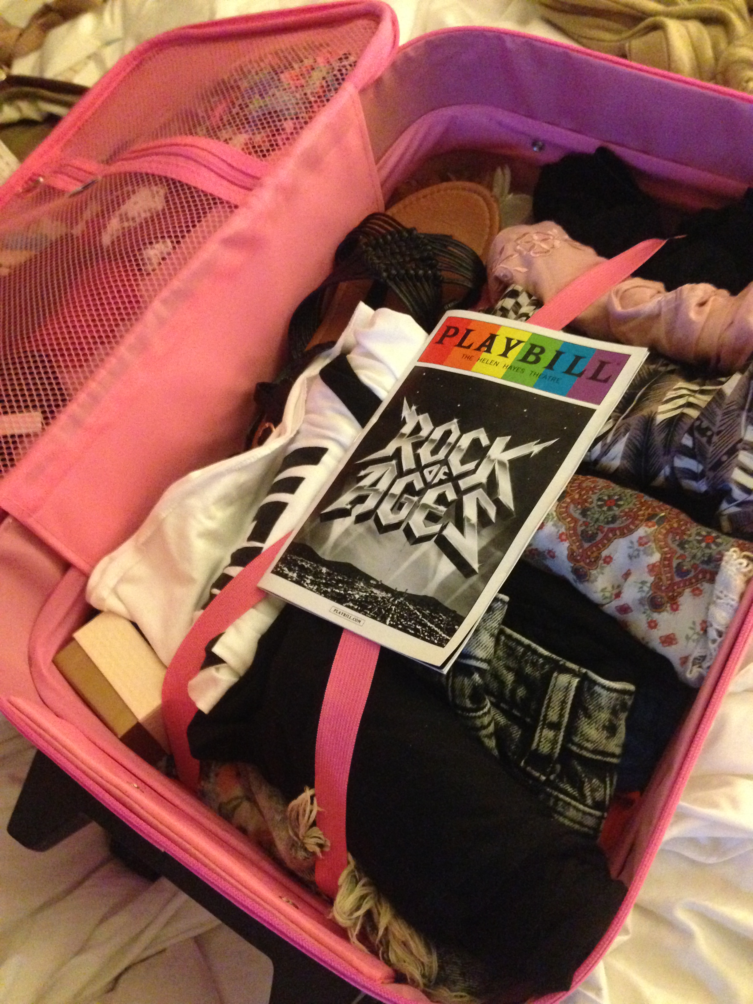Right after dinner we parted ways with our extended family and took a subway back to our hotel to get ready. For what? TO SEE ROCK OF AGES. It was a hysterical play and I’ll admit, even though none of the actors tweeted me back, it was pretty rad.