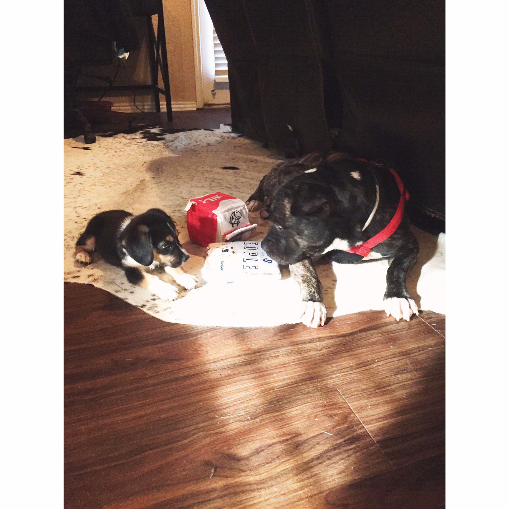 We got a Gannicus sized box because the little one could play with the big guy things but Gannicus would probably just eat puppy things.